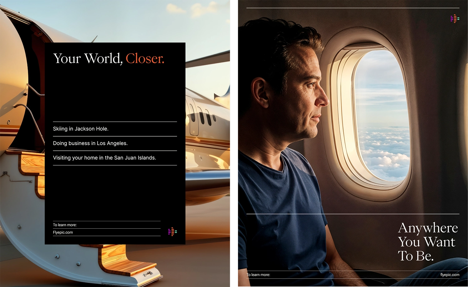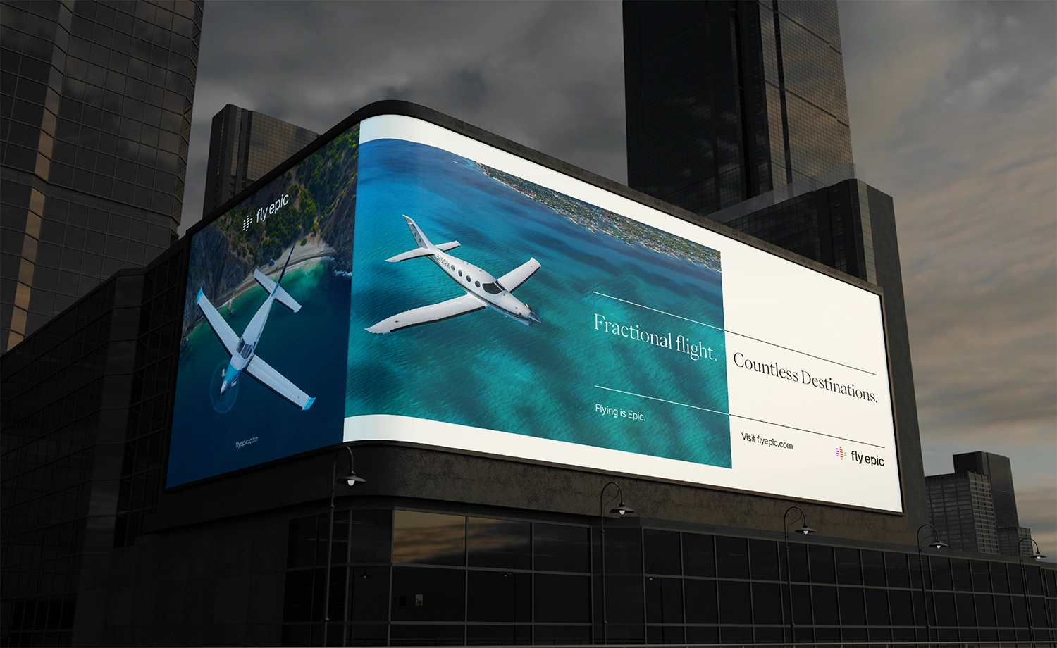 The FlyEpic identity was developed as a bold, lifestyle-centric solution that redefines what a private aviation brand can be. Rather than positioning FlyEpic as a transactional flight service, the brand is elevated into a cultural statement, a symbol of aspiration, individuality, and experience. It speaks not just to where you’re going, but who you are when you get there.