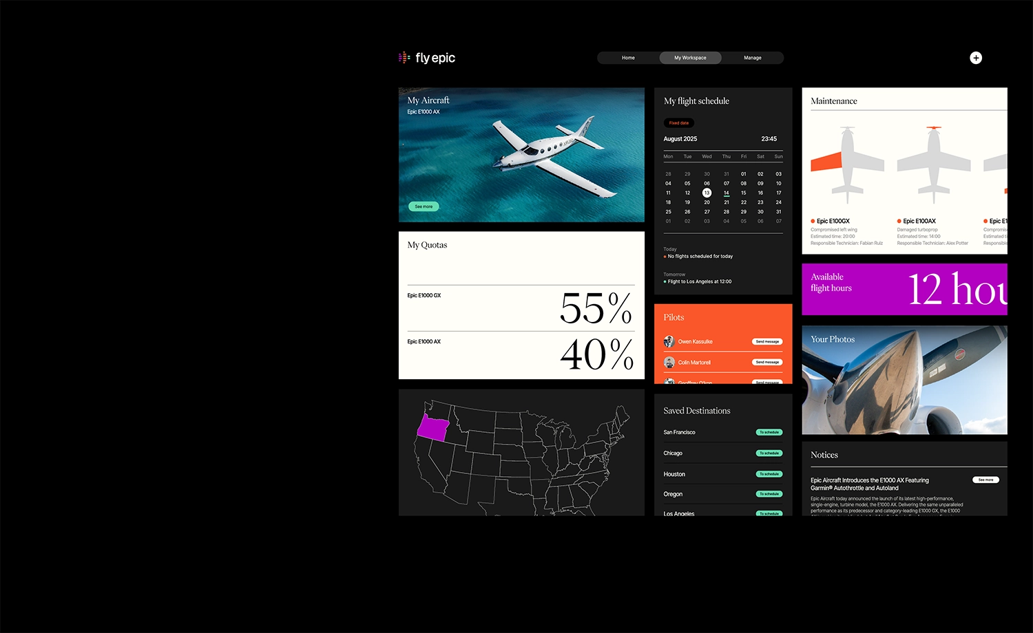 FlyEpic was founded to reimagine the traditionally rigid and status-driven world of private aviation. From its headquarters in Bend, Oregon, the company, led by two young entrepreneurs, draws inspiration from the golden age of flying, blending classic elegance with modern cultural relevance. More than just an aviation brand, FlyEpic offers a lifestyle experience built around design, access, and emotional connection.