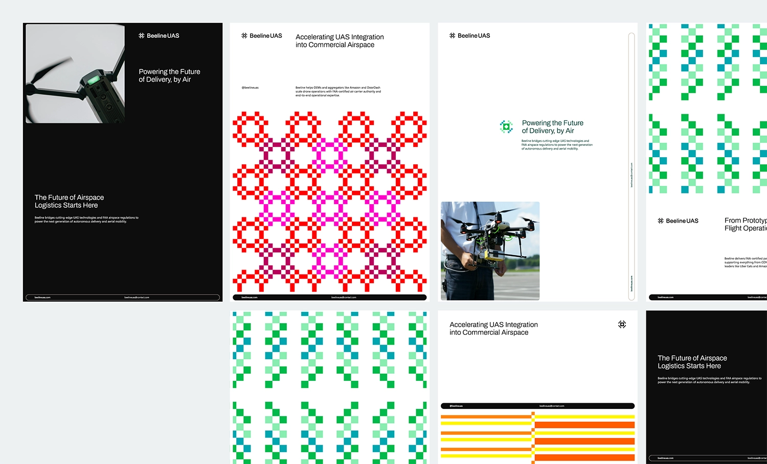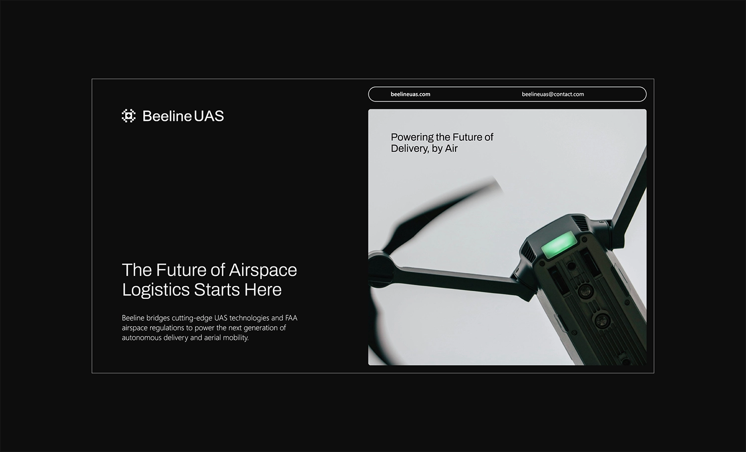 Establishing Beeline’s brand identity required balancing the innovative nature of UAS technology with the professionalism demanded by aviation regulation. The challenge lay in communicating a clear, differentiated value proposition in a highly technical space, while emphasizing Beeline’s drone-agnostic, scalable operations model.