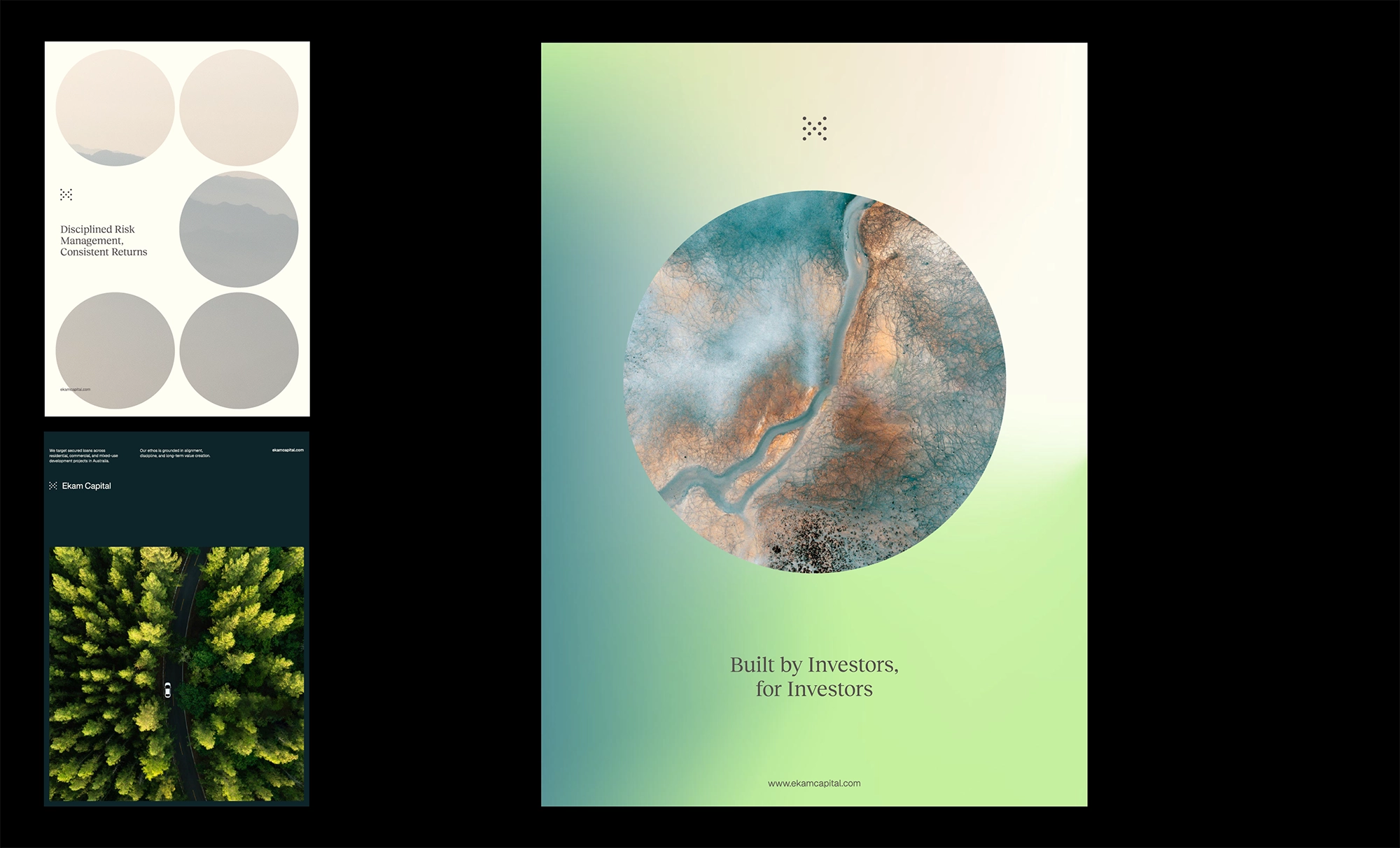 Ekam Capital’s brand identity was designed to harmonize institutional credibility with a warm, human-centered aesthetic, appealing to both financial advisers and end-investors.