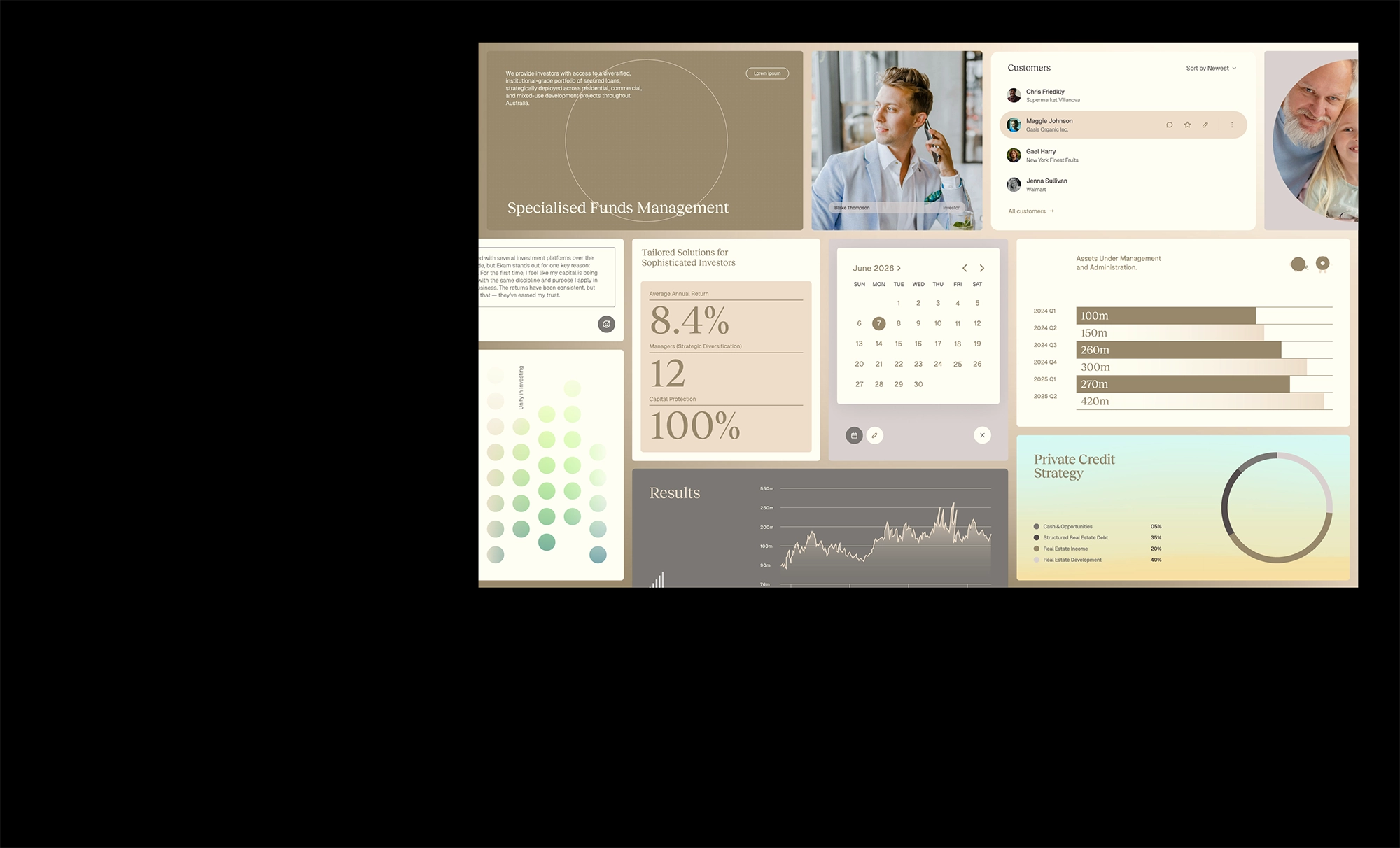 The identity needed to convey sophistication while remaining deeply personal and accessible. Inspired by Australian landscapes, the final brand design uses organic shapes, earthy tones, and minimalist layouts to reflect natural longevity, stability, and clarity.
